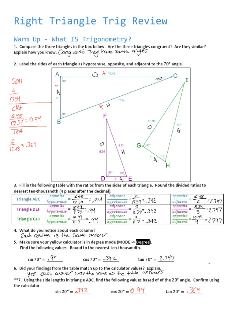 Right Triangle Trig Review They 0 Trigonometric Functions Trigonometry